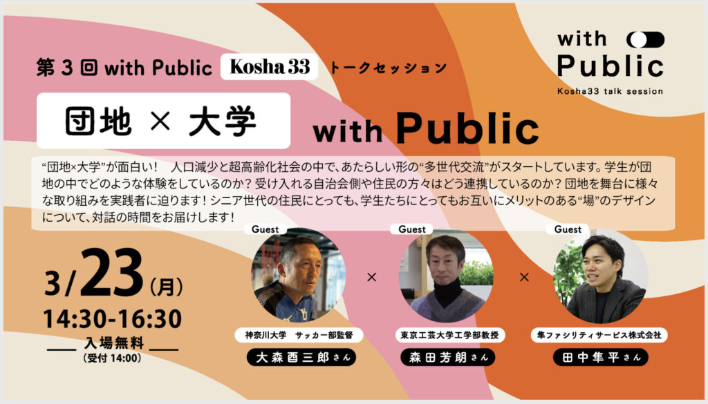 「with Public ~Kosha33 talk session~」は、まちづくり、暮らしづくりにおける、