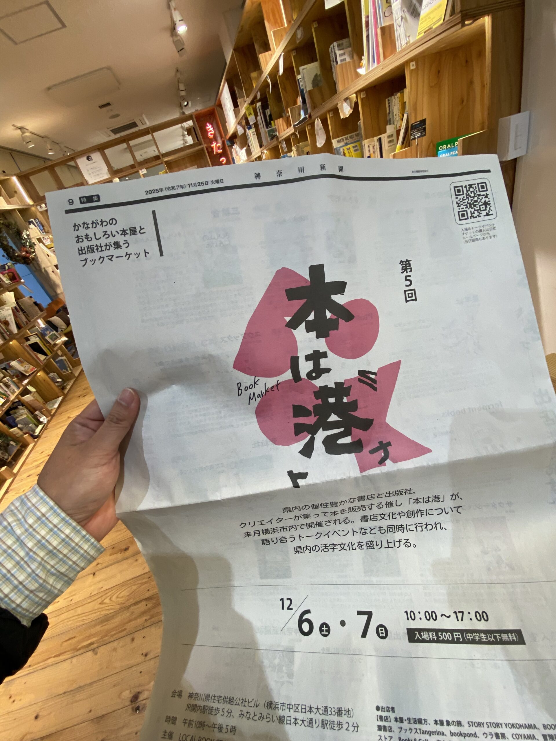 一昨日の11月25日(水)、神奈川新聞に「本は港」の全面広告が掲載されました。